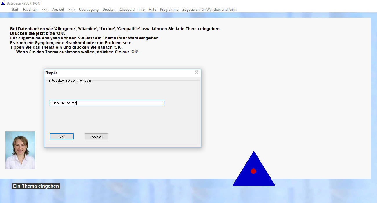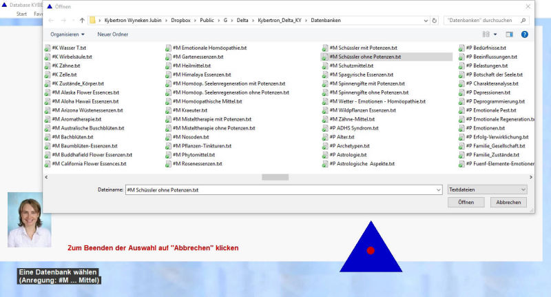 Das Database-Programm wählt auf Wunsch homöopathische und andere Mittel mit Potenz aus, die in Resonanz zu dem gewählten Thema und der Person stehen.