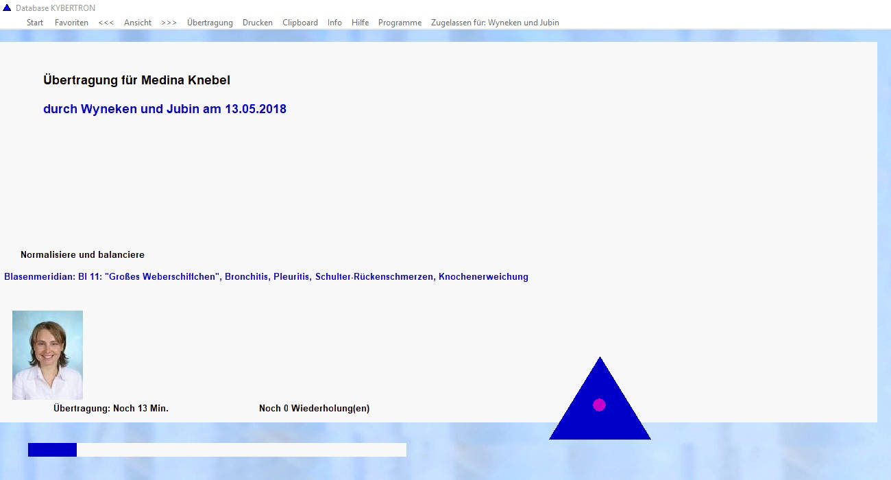 Die Auswertung können Sie drucken, über Word ausgeben, weiterverarbeiten und speichern. Schließlich können Sie auf Übertragung klicken und die in der Auswertung erstellten Inhalte balancieren. Sie können auch selbst neue Datenbanken erstellen. Damit können Sie das Kybertron Delta so einrichten, dass Ihr Spezialgebiet in die Analyse, die Auswertung und die Übertragung einbezogen wird.