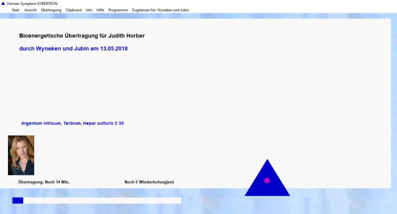 Diese können Sie übernehmen und weitere Symptome hinzufügen. Sie wählen die Potenz (die Verdünnung und die Verdünnungsschritte). Die Schwingung der Mittel kann direkt zur Person oder auf Transmitter (z.B. Wasser, Tropffläschchen, Globuli oder Objekte) übertragen werden.